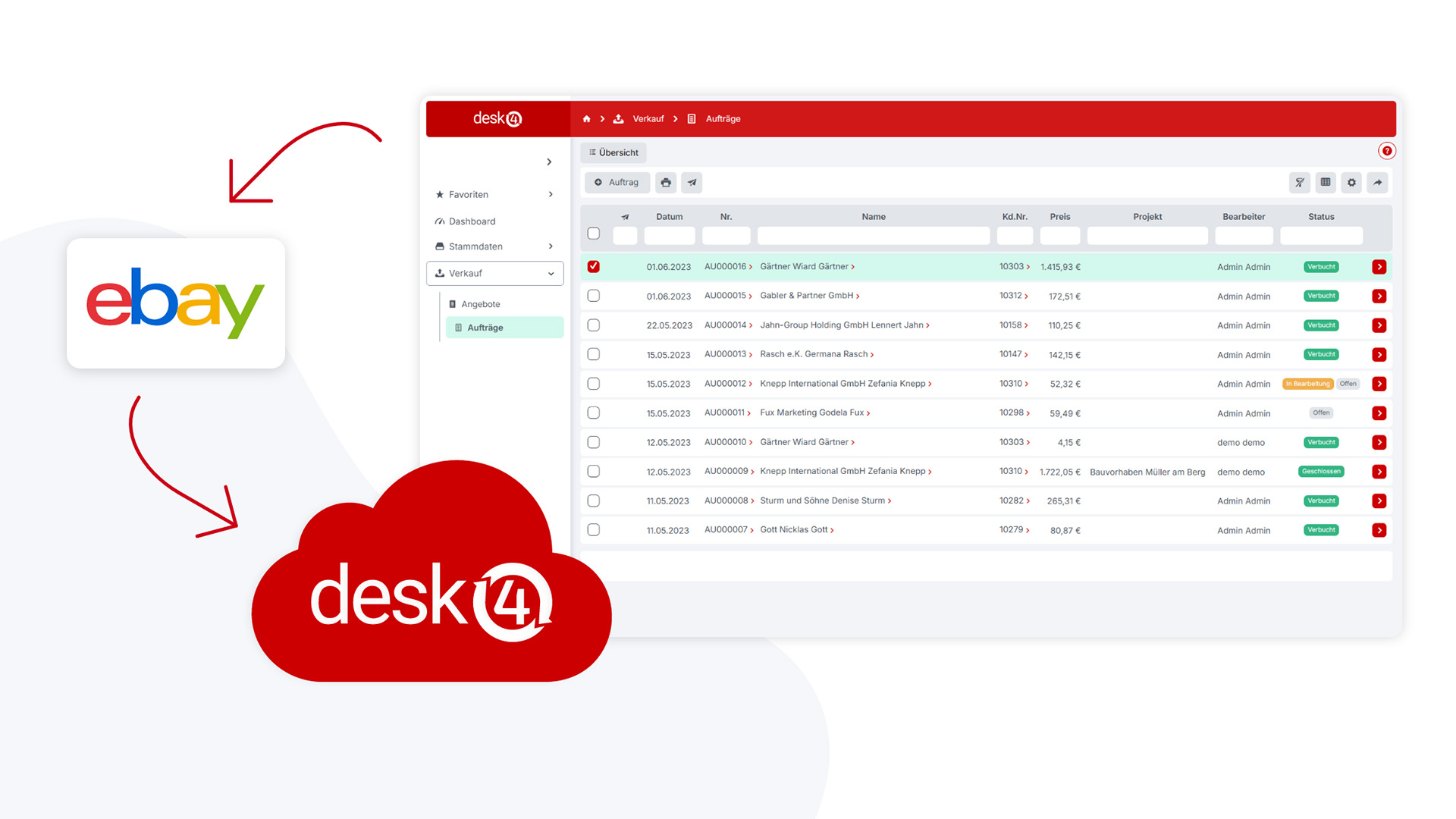- Automatischer Auftragsimport – Alle eBay-Bestellungen landen direkt in Ihrer desk4 Warenwirtschaft.